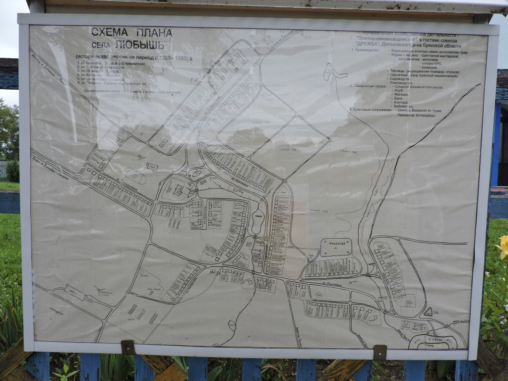 Не так давно, летом, они составили вот этот план Любыши, и отметили на нем дома своих земляков (по деревенским прозвищам или кличкам, как принято в деревнях и сёлах). Получилось интересно и полезно молодым — детям и внукам жителей села.